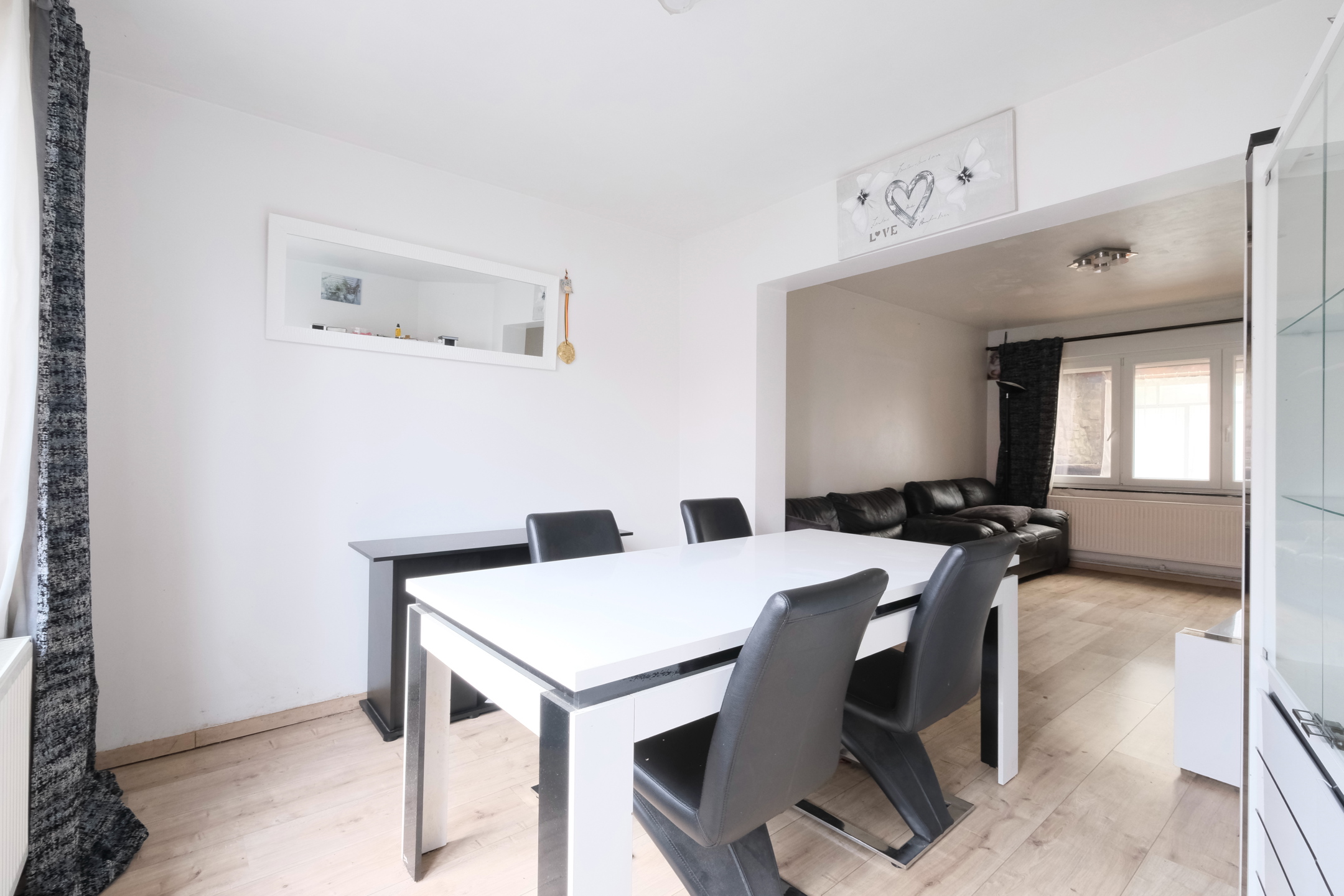 Partiellement rénovée et érigée sur une parcelle de terrain de 350 m², elle se compose comme suit : un hall d’entrée avec une toilette indépendante, une pièce de vie agencée en une salle à manger et un salon ainsi qu’une cuisine semi-équipée. Au premier étage, le hall de nuit dessert trois chambres et une salle de bain. Le bien dispose également d’un grenier pouvant être aménagé selon votre imagination. Au sous-sol, un local technique, un vide-ventilé et deux box de cave. À l’extérieur, un espace jardin avec annexe.