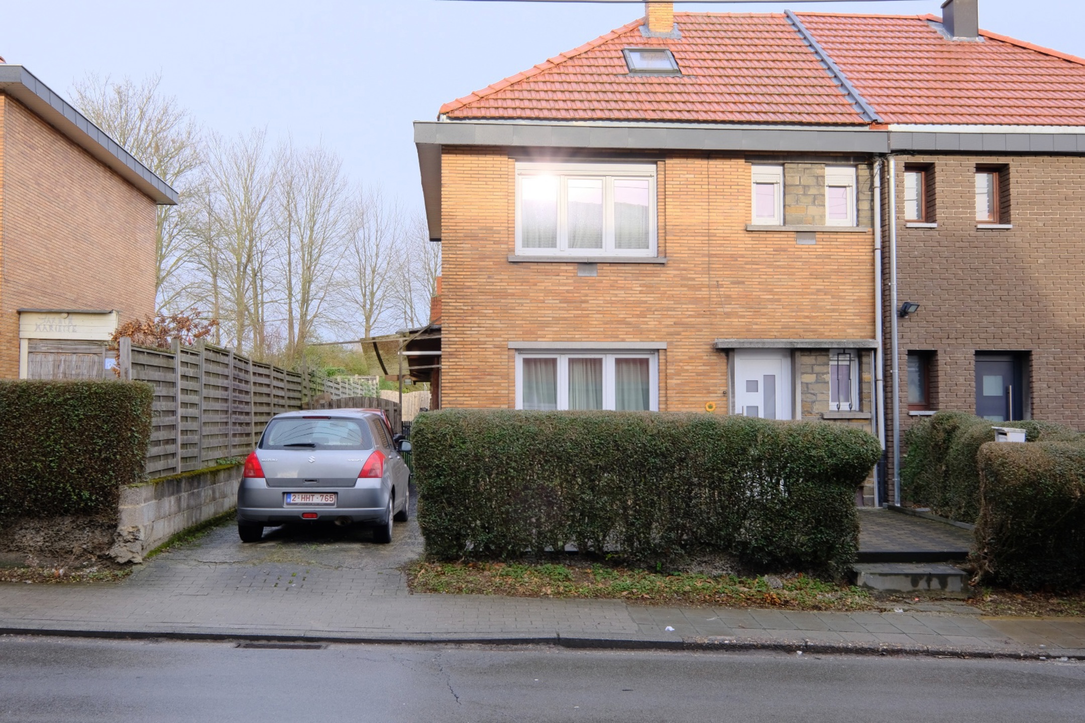 Habitation légèrement en retrait par rapport à la chaussée